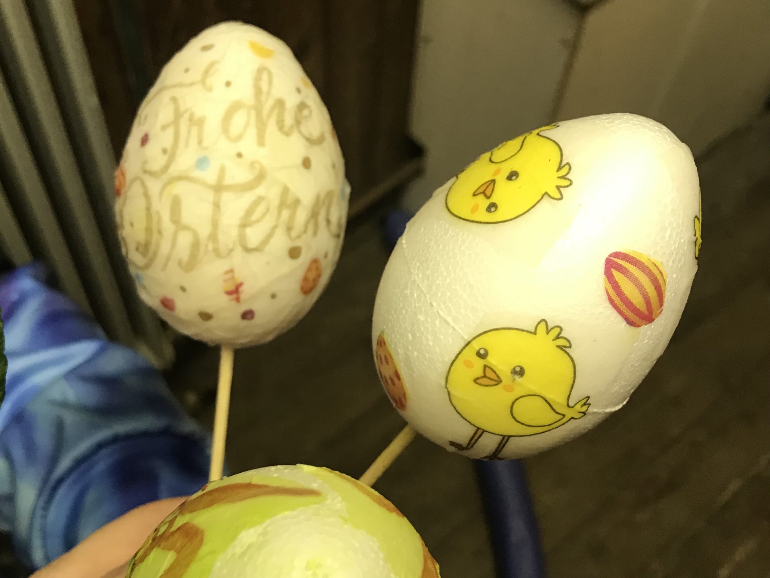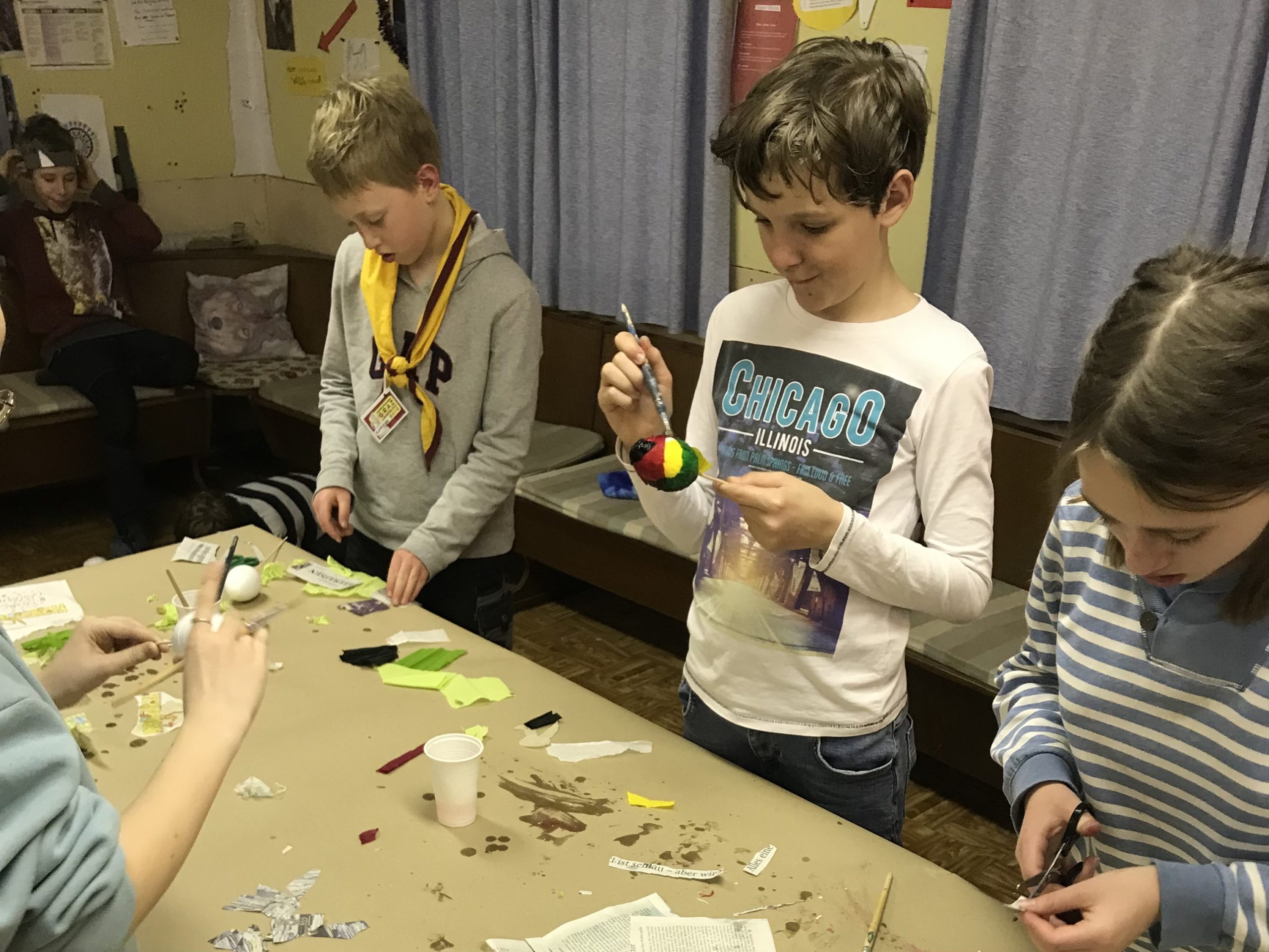 Kurz vor Ostern bastelten die GuSp ganz besonderen Schmuck für den Osterbaum: Aus Styropor-Eiern, Osterservietten, Krepppapier, alten Zeitungen und (sehr!) viel Kleister entstanden viele bunte Unikate, die sich am Tisch genauso gut machen wie im Osternest. Jede*r konnte dabei gleich ein paar Stück verzieren. Die fertigen Eier mussten dann noch ratz fatz trocknen bevor die Heimstunde um war und es ab nach Hause ging. Wir finden, die Ergebnisse sind gelungen!