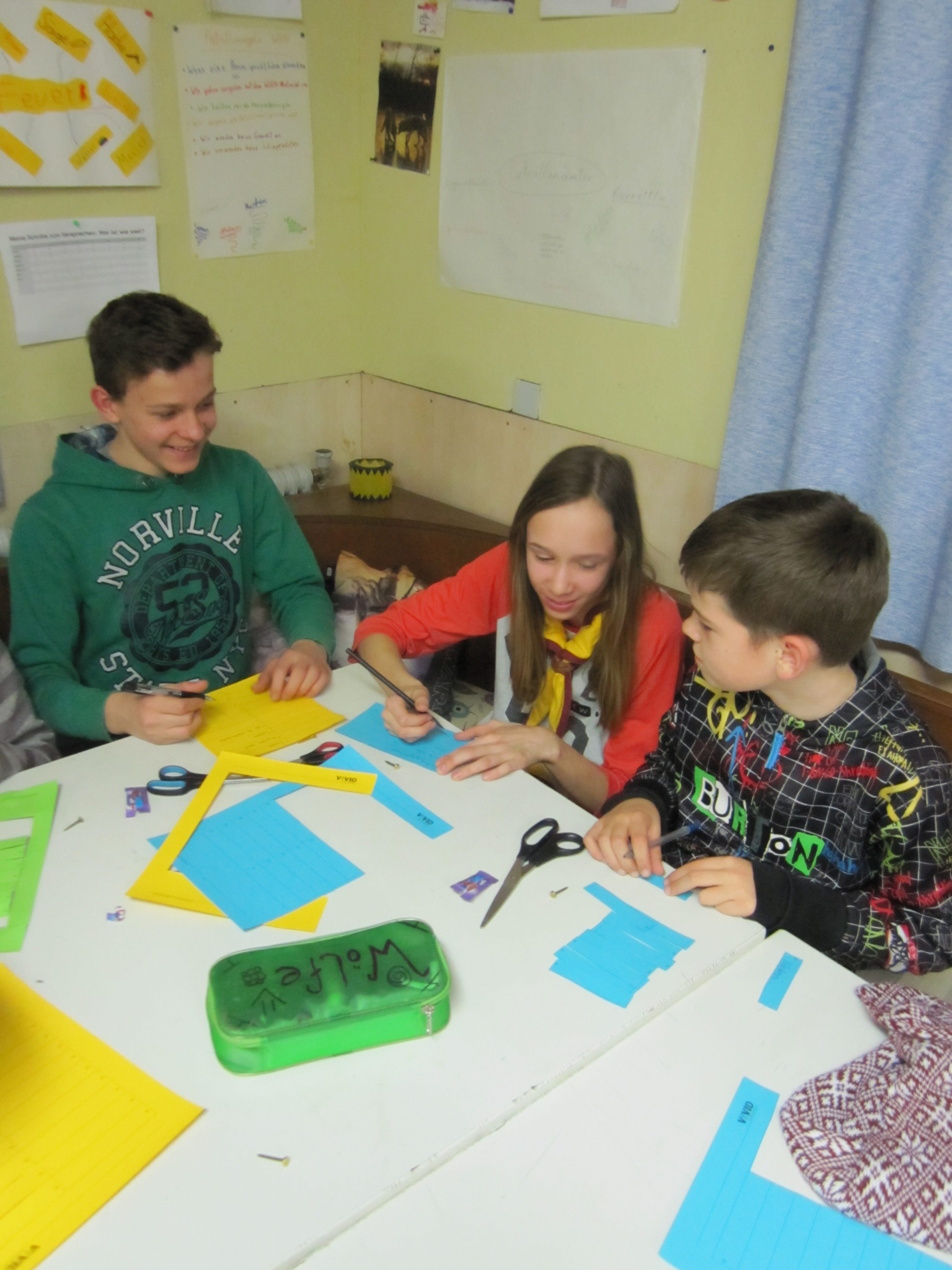 Alternativen zu Gewohnheiten aufzuzeigen, die einen Großteil ihrer Freizeit vereinnahmen und so irgendwann auch einmal „zu viel“ werden können, war das Ziel der letzten Übung: Die GuSp sollten sich überlegen, was ihnen guttut und Spaß macht und diese Dinge auf kleine bunte Zettelchen schreiben. Diese wurden danach mit einer Klammer zu ihrem persönlichen „Ressourcenfächer“ zusammengeheftet, den sie mit nachhause nehmen konnten. In Zukunft können sie ihn zu Rate ziehen, wenn sie (aus Langeweile oder aus Frust) einmal nicht wissen, was sie tun sollen.
